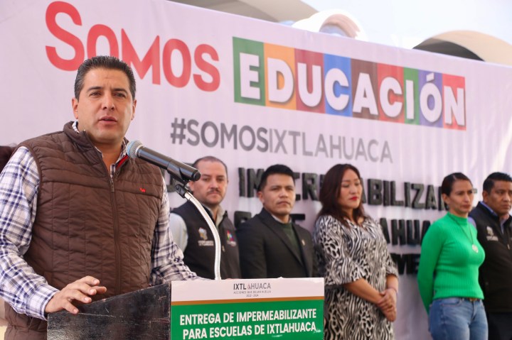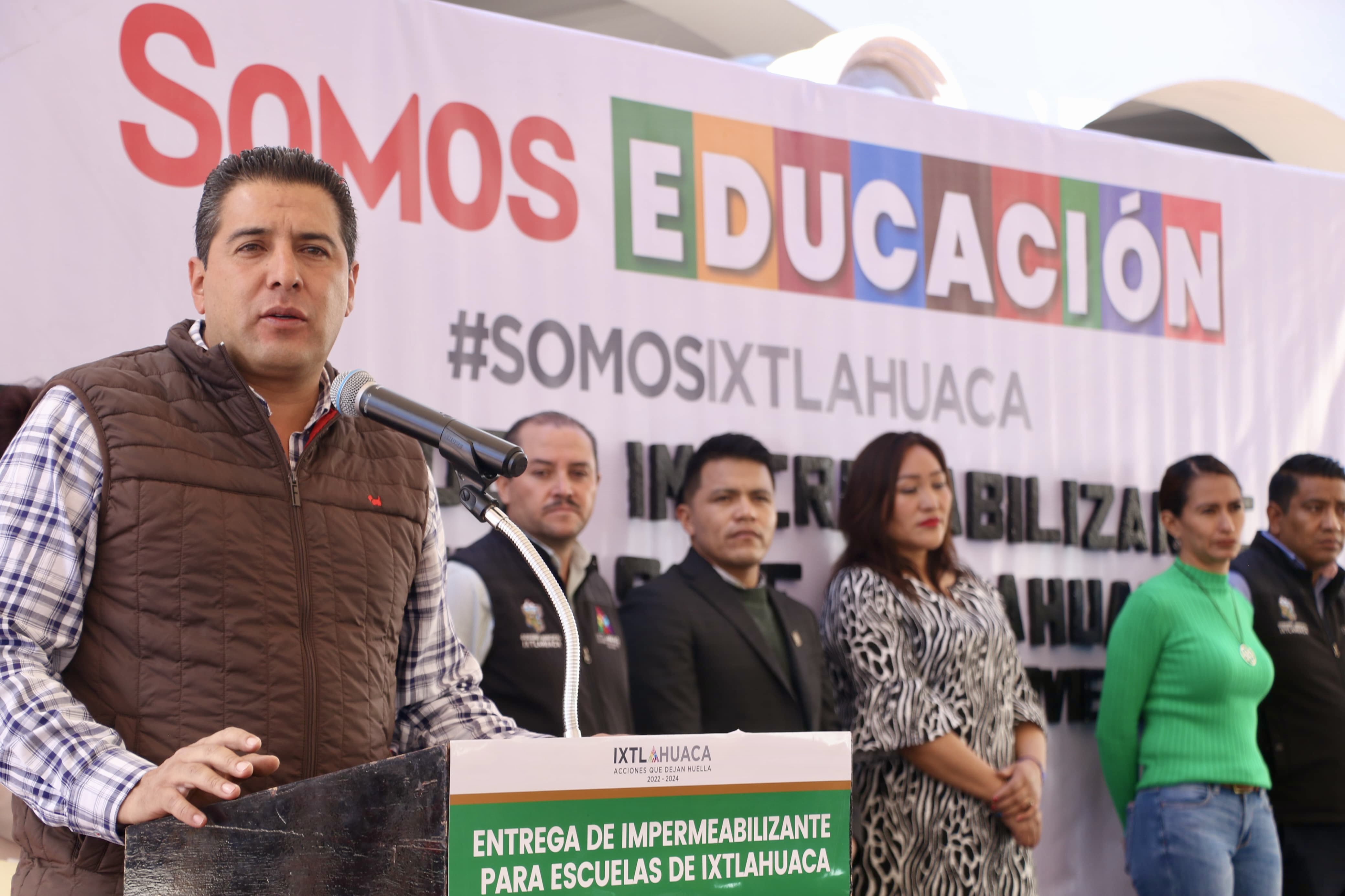 Abuzeid Lozano Castañeda, presidente municipal de Ixtlahuaca, entregó impermeabilizante para 40 instituciones educativas, con una inversión de un millón 680 mil pesos provenientes de recursos municipales.