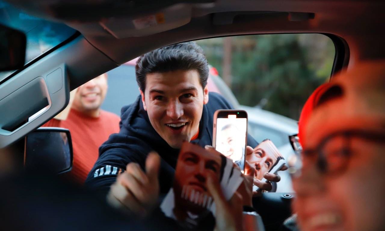 Samuel García estuvo acompañado de su esposa Mariana Rodríguez Cantú. «Vamos a pintarnos de fosfo ¡Samuel para Presidente!», exclamó un militante.