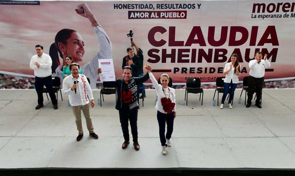 En el evento, Mario Delgado, presidente de Morena, y Claudia Sheinbaum entregaron la constancia de coordinador de la defensa de la transformación en Chiapas a Eduardo Ramírez.