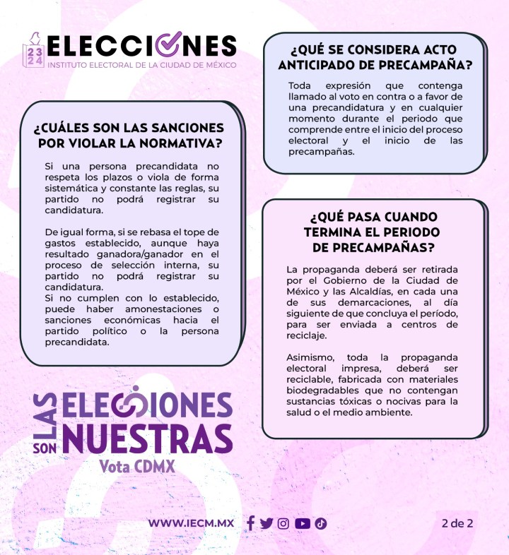 Durante este periodo, las personas aspirantes deberán cumplir con los topes de gastos de precampaña establecidos por el IECM.