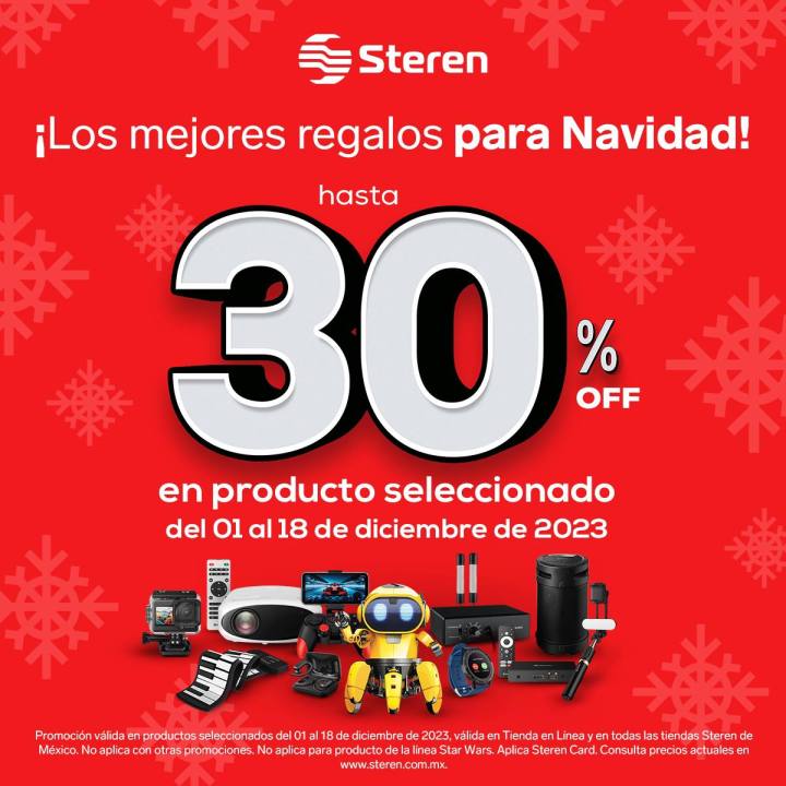 En estas festividades, Steren promete transformar tus regalos en experiencias memorables. Desde el 1 hasta el 18 de diciembre de 2023, la reconocida marca invita a los amantes de la tecnología a sumergirse en descuentos irresistibles, alcanzando hasta un 30% en su selecta gama de productos.