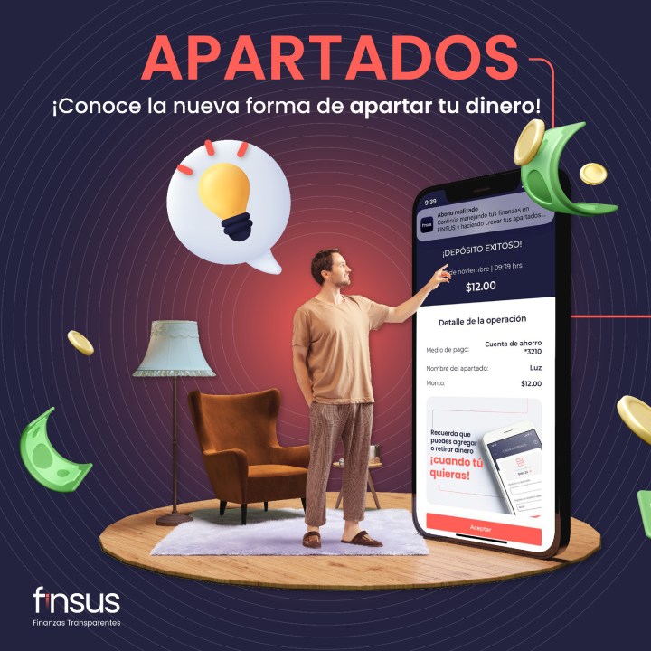 Es por eso que Finsus, como empresa con responsabilidad social y que fomenta la inclusión financiera, creó en su app el módulo de Apartados, que permitirá a sus usuarios ahorrar de manera más fácil, organizar sus finanzas, alcanzar sus metas y, por si fuera poco, hacer crecer su dinero.