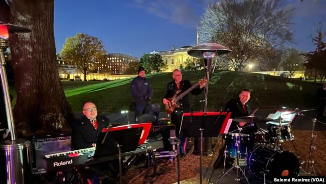 La banda del Cuerpo de Marines, conocidos por su conexión histórica con la posición del presidente de EEUU, participaron de la inauguración de la pista de hielo con música típica de la temporada navideña.