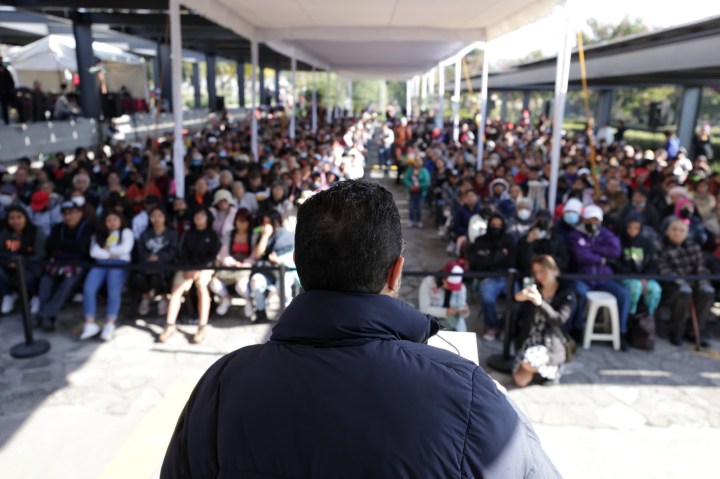 En el marco de la Jornada «Bienestar en Temporada Invernal 2023-2024», el jefe de gobierno, Martí Batres Guadarrama, lideró la entrega de 2 mil cobijas y 2 mil comidas calientes a familias de la alcaldía Álvaro Obregón.