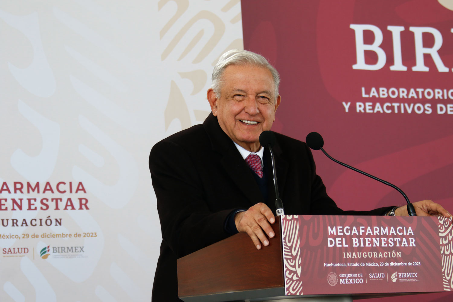 “Hoy es un día muy especial. La verdad estoy contento porque logramos este propósito de que se tenga una farmacia grande para que se distribuyan todas las medicinas, que puedan llegar hasta los pueblos más apartados de nuestro territorio, que a nadie le falte una medicina”, expresó el presidente Andrés Manuel López Obrador en la inauguración de la «megafarmacia» para el bienestar en Huehuetoca, estado de México.