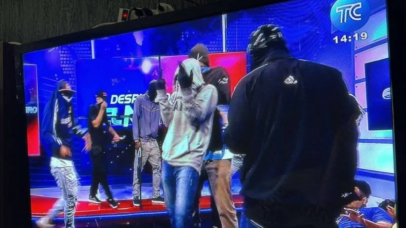Minutos después de las 2 PM hora local delincuentes encapuchados irrumpieron en las instalaciones de TC Televisión, en Guayaquil, y realizaron disparos al aire mientras el canal transmitía en vivo, según informes de la prensa local.