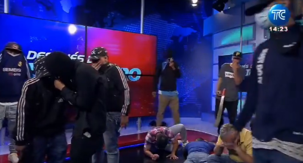 Guayaquil, Ecuador.- Un grupo de hombres encapuchados, armados con fusiles y granadas, irrumpió este martes en un estudio del canal de la televisión pública TC en Guayaquil, en medio de una nueva arremetida del narco que sacude a Ecuador desde hace dos días.