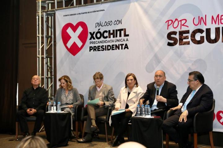 En un diálogo titulado «Por un México Seguro», Xóchitl Gálvez, precandidata a la Presidencia de la República por la coalición Fuerza y Corazón de México, junto con Rubén Moreira Valdez, coordinador de las mesas temáticas de Seguridad, encabezaron un encuentro en la capital mexicana.