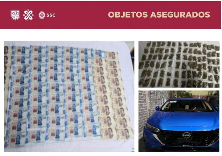 Durante el operativo, se incautaron 109 dosis y 15 paquetes de una sustancia similar a la marihuana, cinco teléfonos celulares, un vehículo azul sin placas de circulación y 85 billetes de diversas denominaciones, sospechosos de ser falsos.