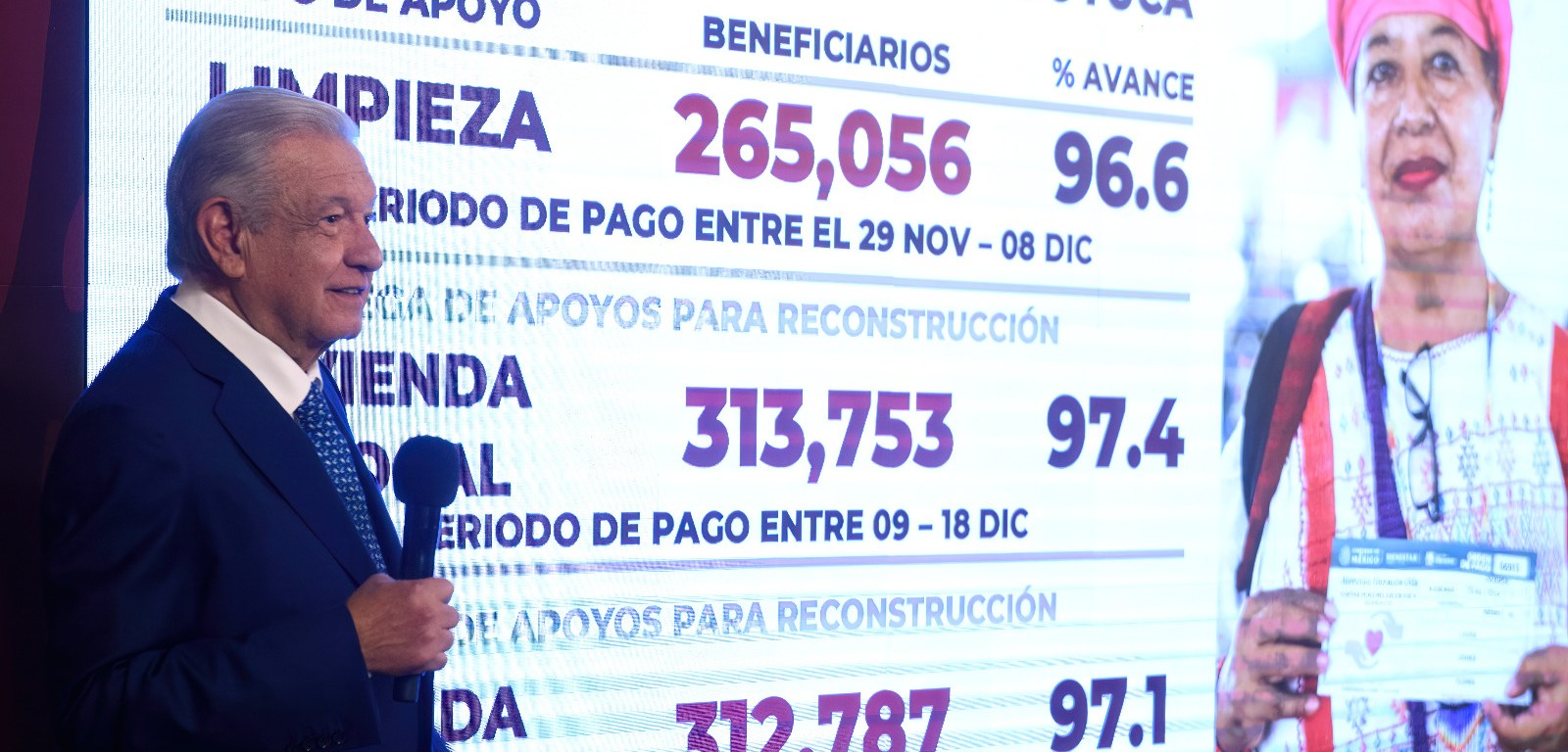 El mandatario presentó datos sobre los apoyos que han sido entregados por la Secretaría del Bienestar a los damnificados.