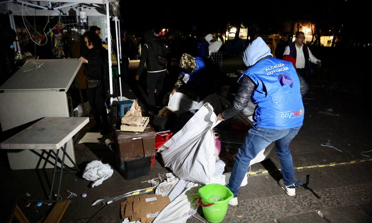 En un procedimiento ordenado, pacífico y apegado a la normatividad, fueron retiradas decenas de carpas de comerciantes que se habían instalado de manera ilegal en la explanada del Jardín Hidalgo en el centro de Coyoacán.
