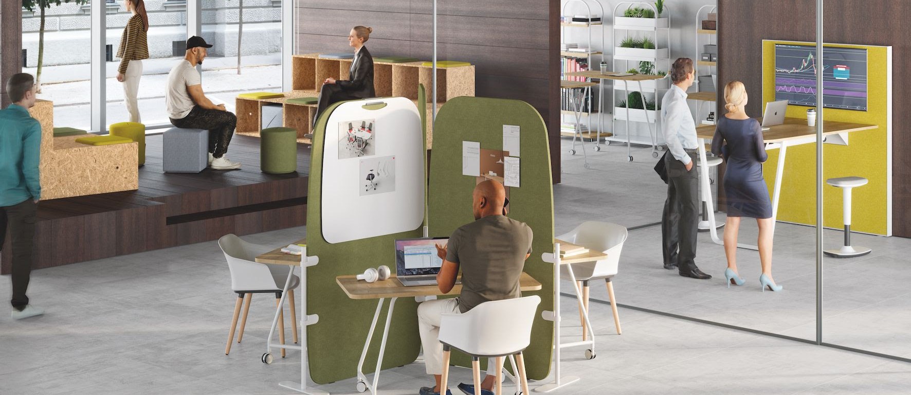 Las distracciones y el ruido en un open space -incrementado con las constantes reuniones online y video llamadas- amenazan el diseño de oficinas eficaz. Para atraer a las personas, las oficinas deben proporcionar espacios privados donde las personas puedan unirse a reuniones virtuales, atender llamadas telefónicas y trabajar juntas en persona sin molestar a quienes las rodean.