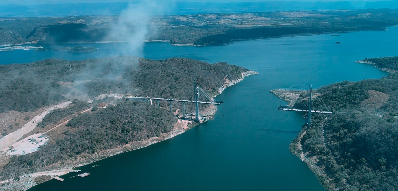 Durante su visita a Chiapas, el presidente Andrés Manuel López Obrador constató este sábado los avances de la construcción de los puentes La Concordia y Rizo de Oro en la presa La Angostura.