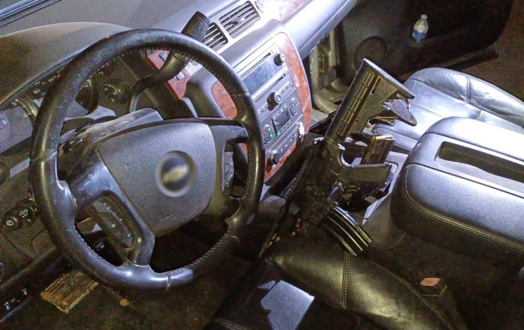 El personal militar y los guardias nacionales se aproximaron y se percataron de que no había personas a bordo; sin embargo, al realizar una inspección en el interior del automotor localizaron un arma larga, 36 cargadores, 1,560 cartuchos útiles y tres chalecos tácticos.