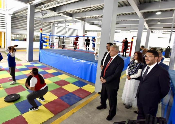 Además de fomentar la práctica del box, la escuela garantiza formación académica en el nivel medio superior con especialidad en Educación Física para que las y los egresados puedan trabajar impartiendo clases, acotó el mandatario.