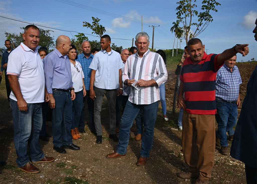 Díaz-Canel exhortó a los trabajadores de la finca a trabajar con más ahínco, al tiempo que reconoció la importancia del terreno para producir alimentos.