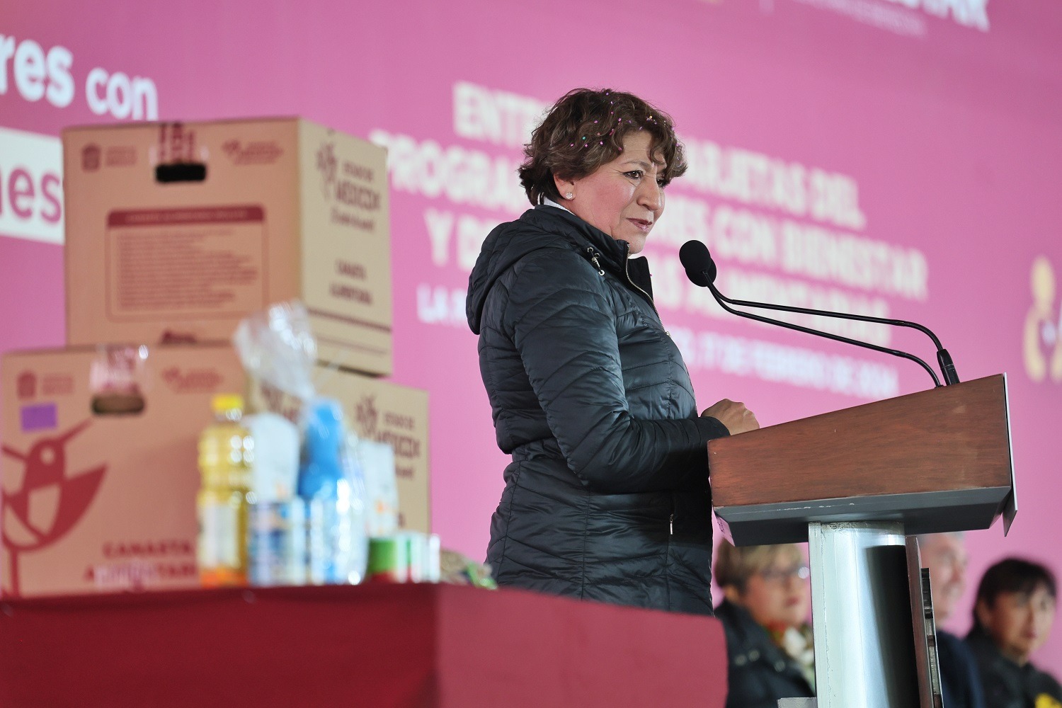 La gobernadora Delfina Gómez Álvarez anunció la entrega de 5 mil tarjetas del programa Mujeres con Bienestar en La Paz, estado de México, destacando el impacto positivo que ha tenido en la vida de 650 mil beneficiarias en el estado.