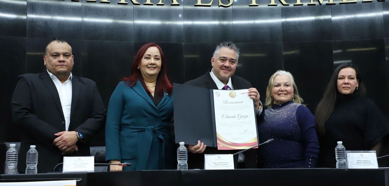 Finalmente, la senadora Cora Pinedo, agradeció la presencia de la maestra Rosalía Buaun Sánchez, presidenta de la Asociación Nacional de Locutores de México; Jadira Armendáriz, directora Nacional de la Asociación Nacional de Locutores de México; Valentina Vázquez, Presidenta de la Comisión Juvenil de la Asociación Nacional de Locutores de México y Christian Langarica, director de Radiorama Nayarit. –sn–