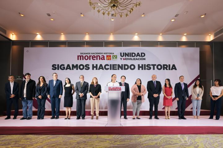 Claudia Sheinbaum Pardo, candidata a la Presidencia de la República por la coalición Sigamos Haciendo Historia (Morena-PT-PVEM) presentó al equipo que coordinará su campaña rumbo a la elección del próximo 2 de junio.
