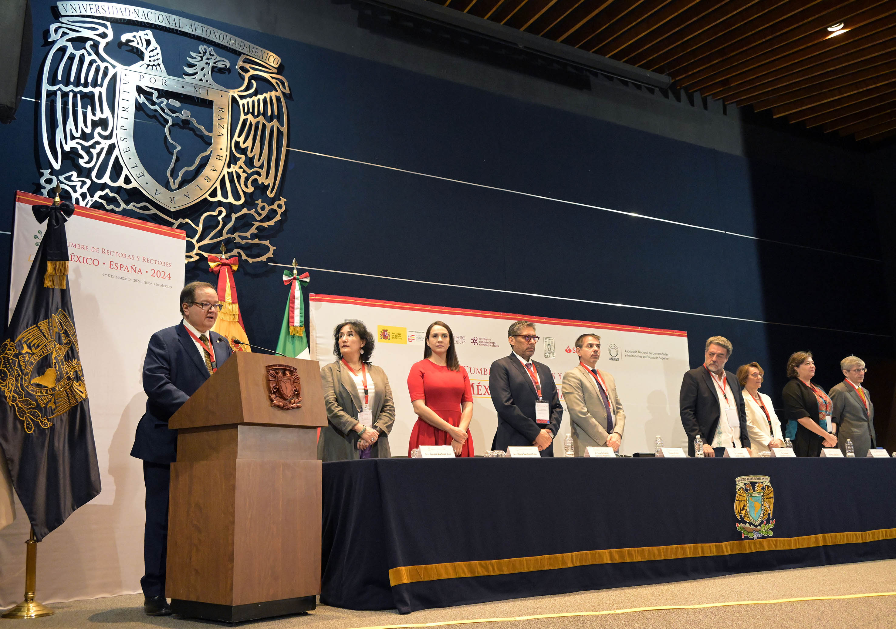 El rector de la Universidad Nacional Autónoma de México (UNAM), Leonardo Lomelí Vanegas, inauguró la Cumbre de Rectores México-España 2024, resaltando el papel fundamental de las universidades como espacios de esperanza e inclusión, así como centros cruciales para la innovación y el pensamiento científico.