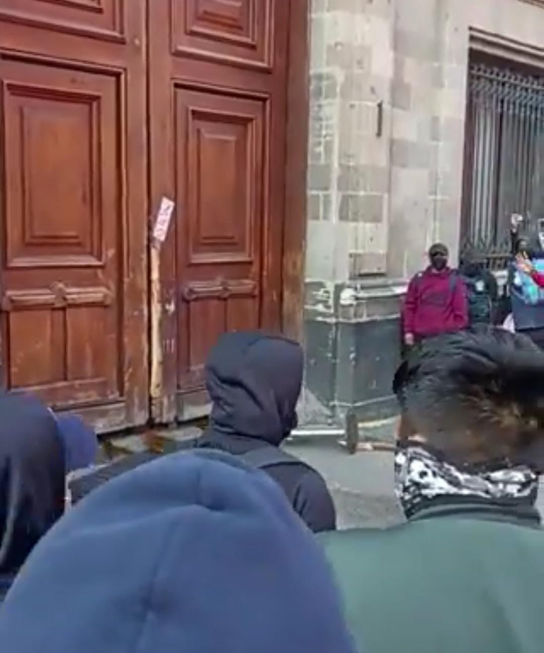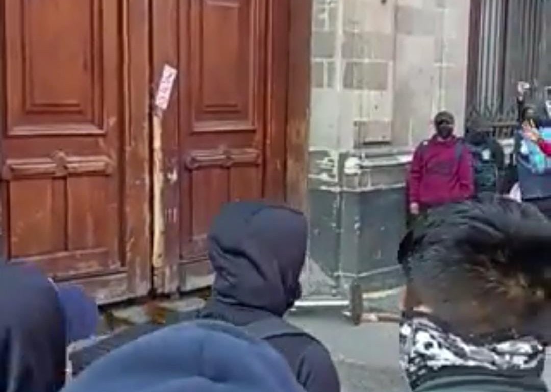 Estudiantes normalistas de Ayotzinapa vandalizaron el Palacio Nacional e ingresaron al recinto tras chocar un vehículo con una puerta.