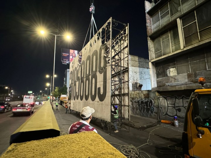 Las labores de retirada se llevaron a cabo de manera simultánea entre las 22:00 horas del jueves y las 02:00 horas del viernes, utilizando tres grúas y ocho cuadrillas. El material retirado fue trasladado al almacén de la Seduvi para su resguardo. –sn–