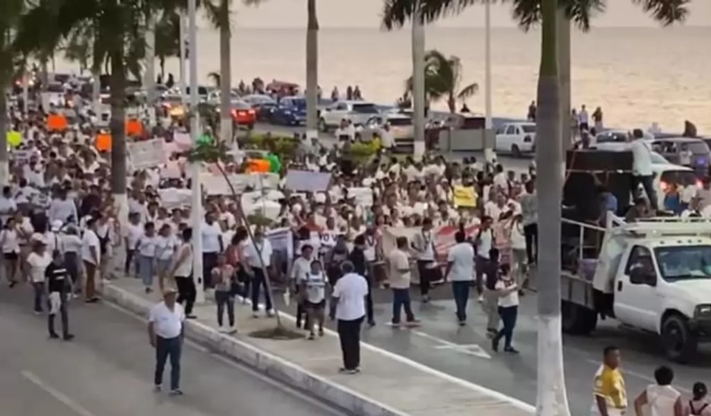 Más de cinco mil personas marcharon en Campeche exigiendo la destitución de Marcela Muñoz Martínez, directora de la Secretaría de Protección y Seguridad Ciudadana, en una movilización que recorrió siete kilómetros por el malecón de la ciudad.