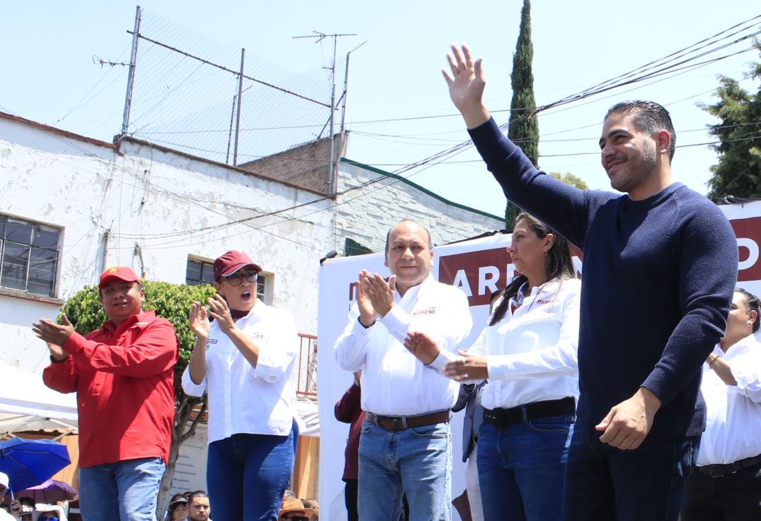 Acompañados de Harfuch, Evelyn Parra y Julio César Moreno inician campaña en V.Carranza