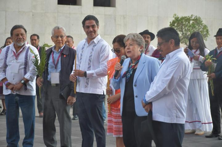 La secretaria de Relaciones Exteriores, Alicia Bárcena Ibarra, y el director general del Instituto Nacional de los Pueblos Indígenas (INPI), Adelfo Regino Montes, inauguraron el Seminario Latinoamericano: Avances y desafíos en la implementación de la Declaración de Naciones Unidas sobre los Derechos de los Pueblos Indígenas, con motivo de los 17 años de dicha declaratoria.