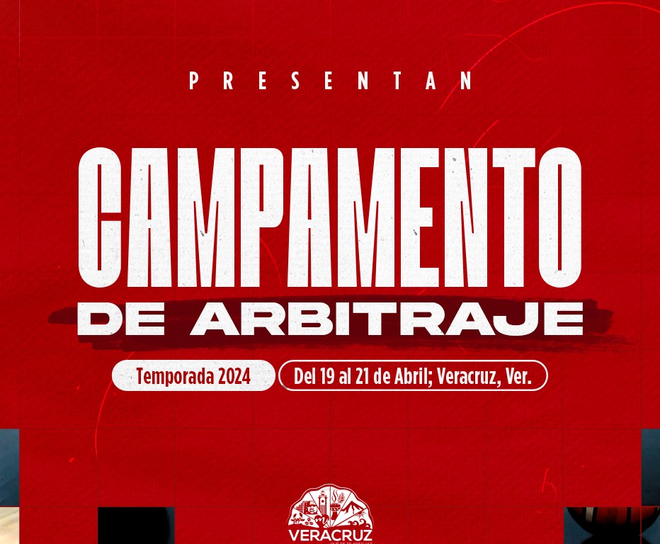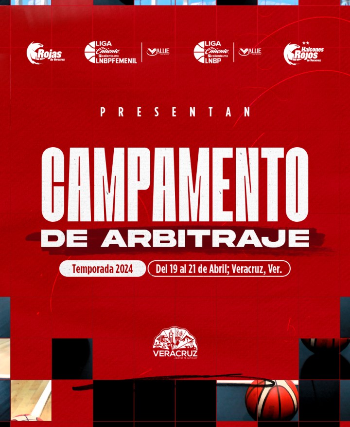 Del 19 al 21 de abril, el Auditorio Benito Juárez, casa de los Halcones Rojos de Veracruz, será el punto de reunión de los mejores oficiales de baloncesto del país en el Campamento de Arbitraje 2024.