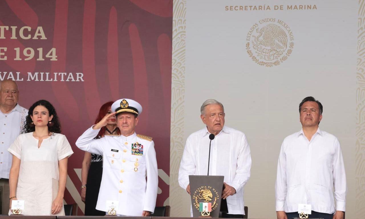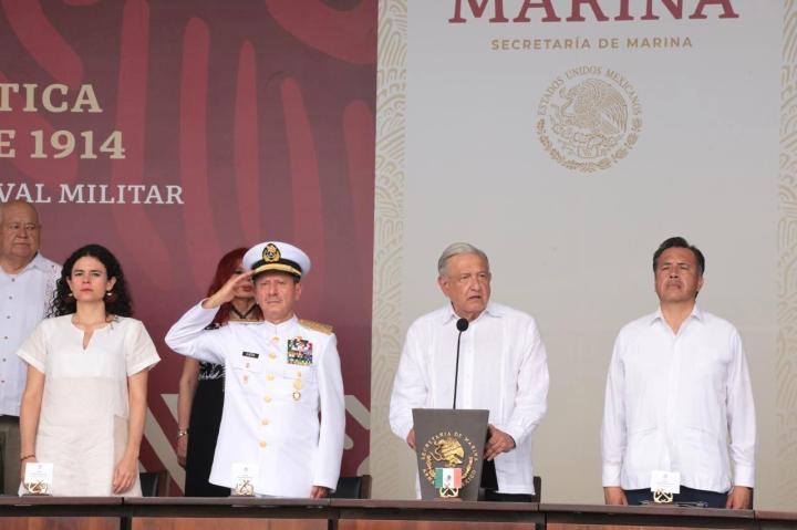 En la Heroica Escuela Naval Militar recordó que los héroes del 21 de abril de 1914 ofrendaron sus vidas en defensa de la patria en contra de una invasión por parte de Estados Unidos en plena Revolución Mexicana.