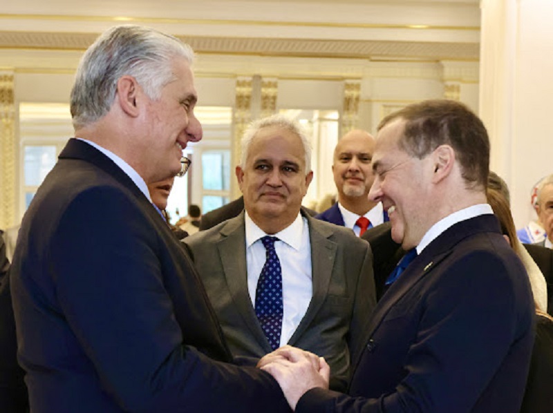 Moscú.- El primer secretario de Partido Comunista de Cuba y presidente de la República, Miguel Díaz-Canel, y el presidente del partido Rusia Unida, Dmitri Medvédev, repasaron hoy aquí el avance de la relaciones políticas bilaterales.