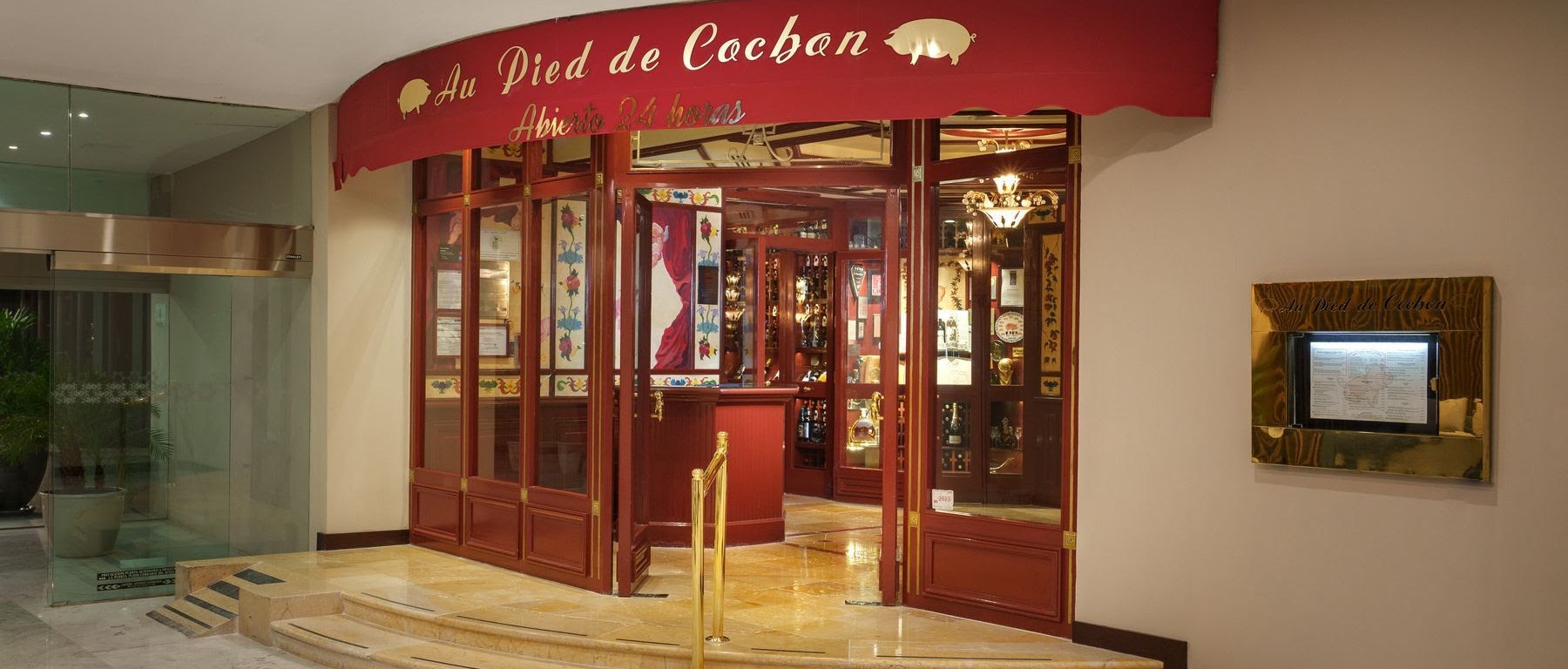 Au Pied de Cochon es un auténtico templo de la comida francesa, al combinar a la perfección la elegancia parisina con un ambiente acogedor. Destacan platillos como el Foie Gras, Cassoulet y Crème Brûlée. El restaurante encanta por su elegancia parisina, su especialidad en platillos clásicos de la gastronomía francesa, su atención impecable y servicio las 24 horas. Además, cuenta con una selección de vinos de la cava más grande de Latinoamérica.