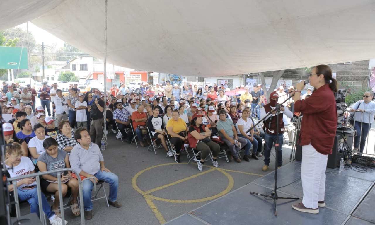 En diálogo con vecinas y vecinos, Azucena Cisneros llamó a votar por MORENA el 2 de junio. Señaló la importancia de concretar proyectos de reencarpetamiento de calles y reparación de fugas y socavones.