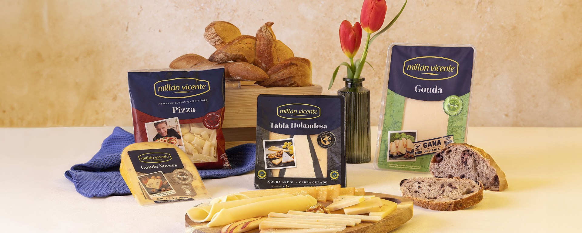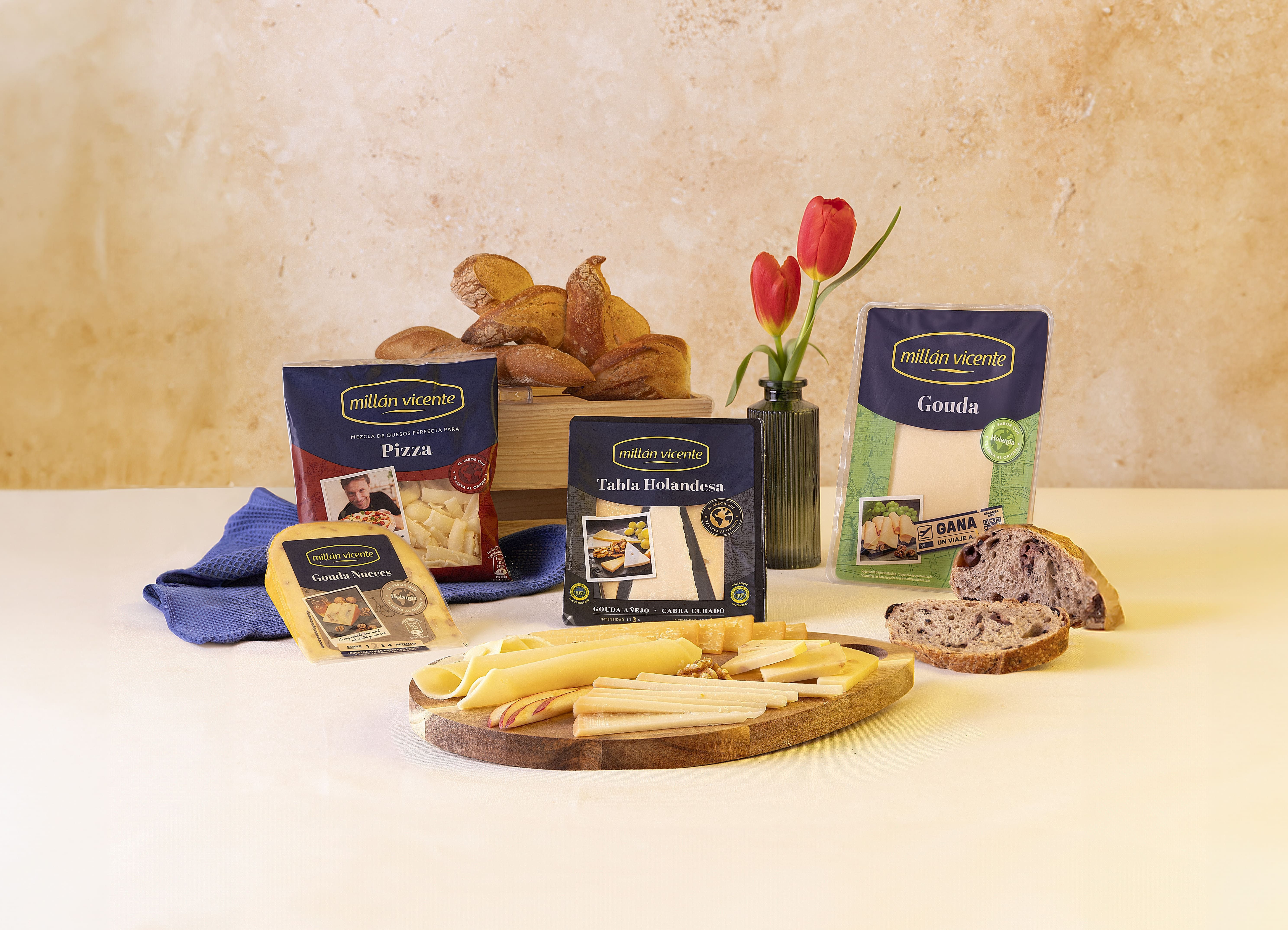 Esto se traduce en una amplia cartera de productos, con formatos como lonchas, cuñas, tablas, la gama Recién Cortado y los quesos rallados, cuyo protagonismo pretende ser reforzado con la colaboración de Gipsy Chef. Con este nuevo portfolio de variedades originales de lugares como Holanda, Dinamarca e Irlanda, una nueva imagen más premium y una estrategia innovadora, la marca pretende poner el foco en el producto y en su capacidad para hacer viajar, a través del sabor, hasta sus lugares de origen.