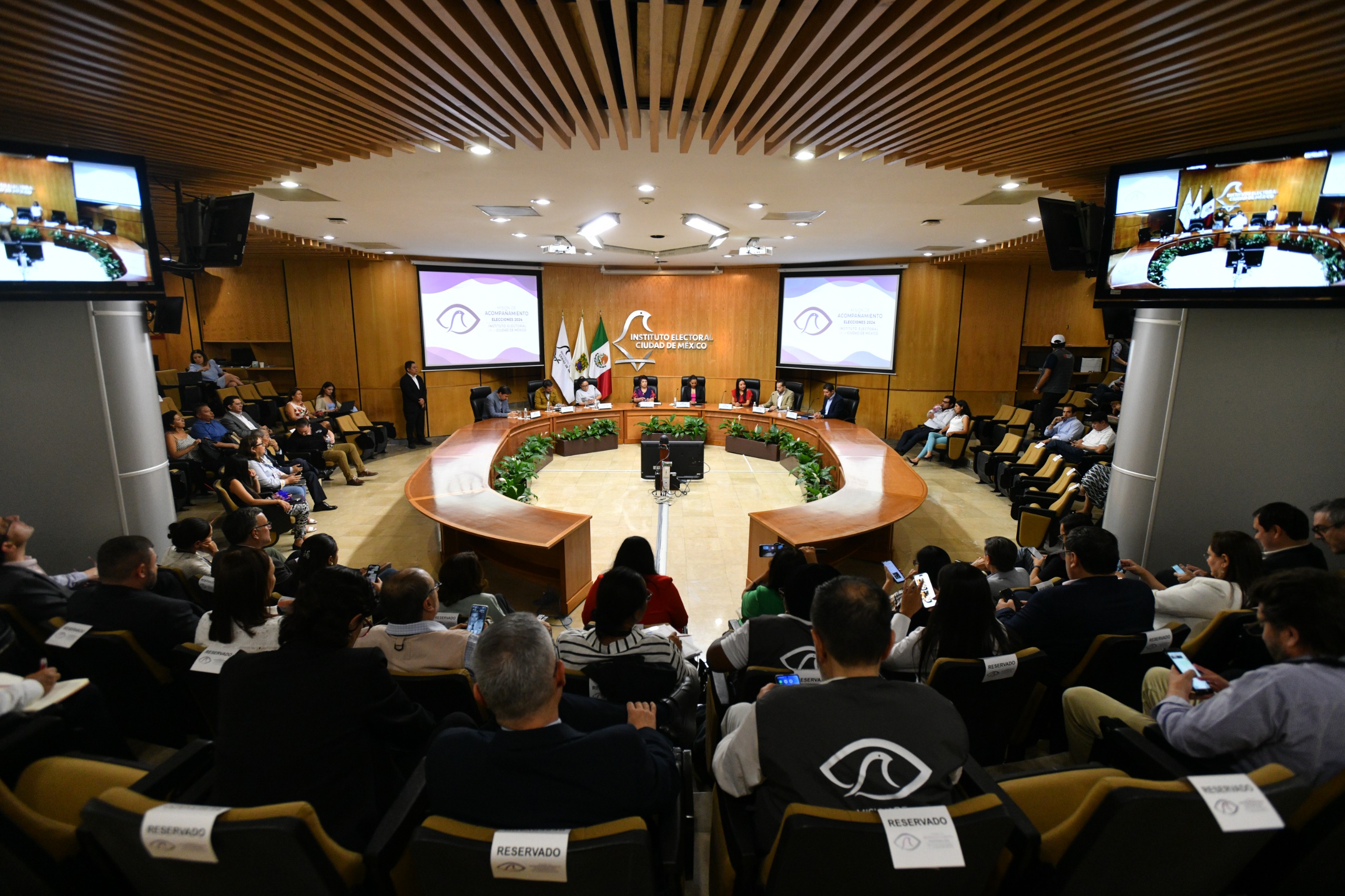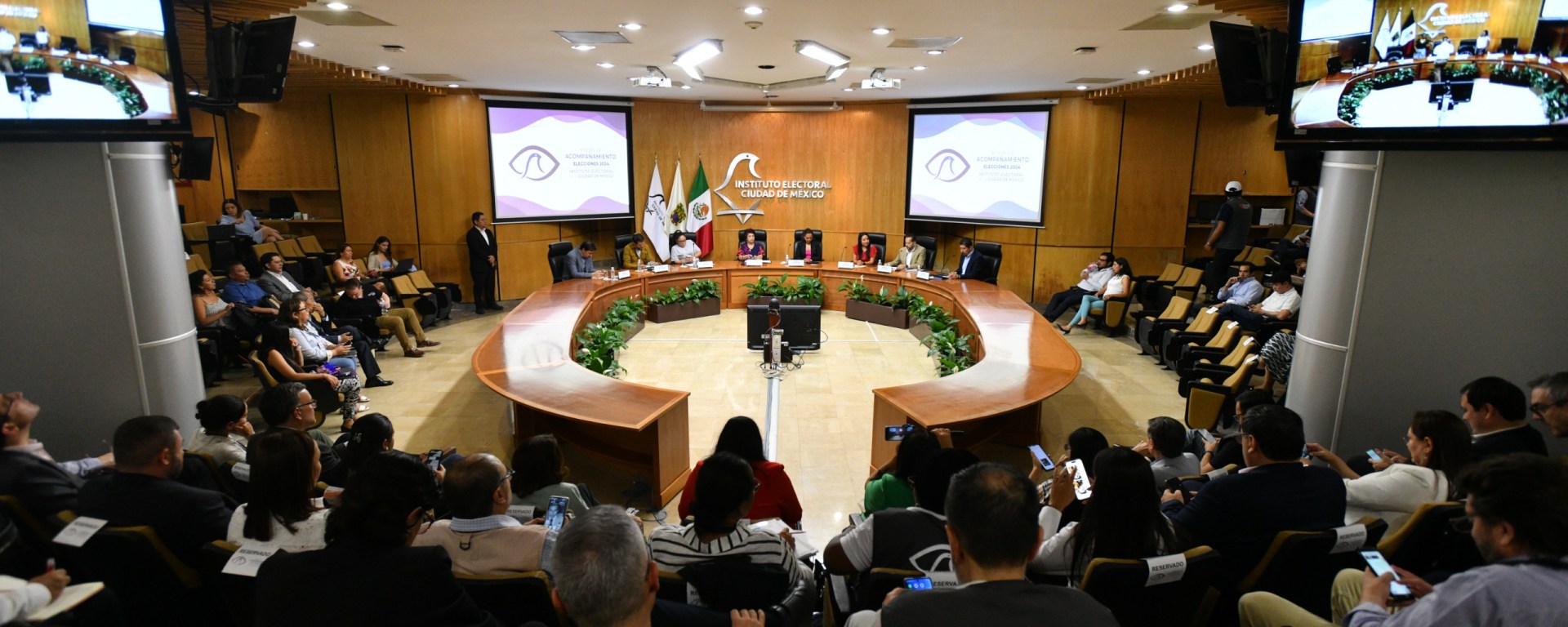 Ante visitantes extranjeras y nacionales que observaron los comicios del 2 de junio, el Instituto Electoral de la Ciudad de México (IECM) presentó las acciones realizadas en torno al Proceso Electoral Local Ordinario (PELO) 2023-2024.