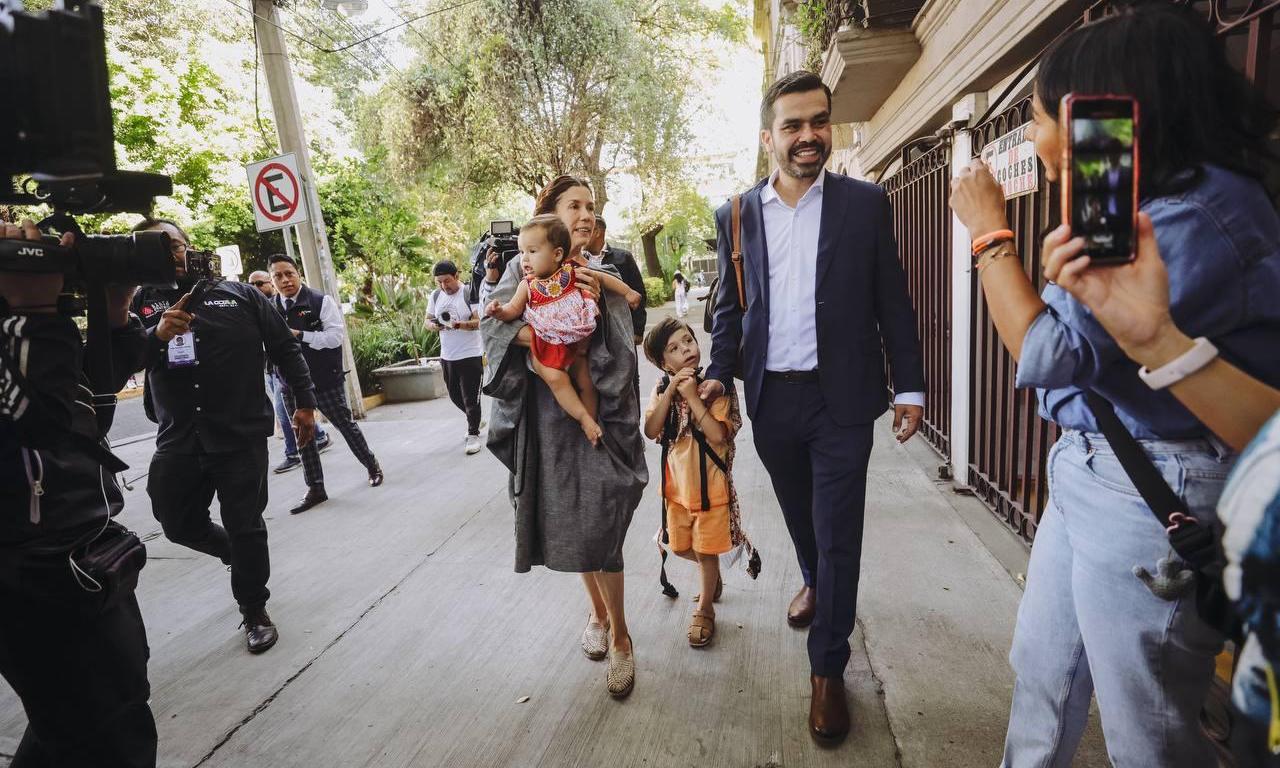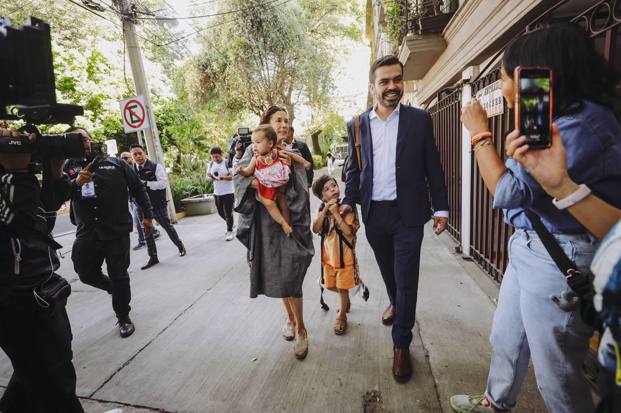 Acompañado de su familia, Álvarez Máynez llegó a su casilla en la colonia Roma Norte pasadas las 9 de la mañana y por la gran asistencia de personas tuvo que hacer fila para no incomodar a los ciudadanos.
