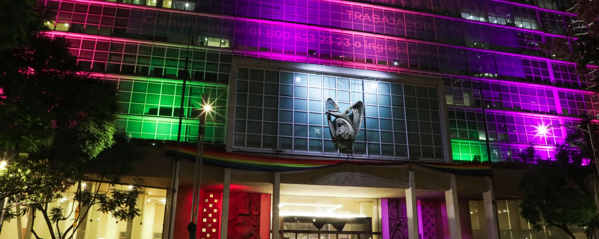 El Instituto Mexicano del Seguro Social (IMSS) realizó el iluminado de su edificio central con motivo del Mes del Orgullo LGBTTTIQAP+ que se celebra a nivel mundial en junio.