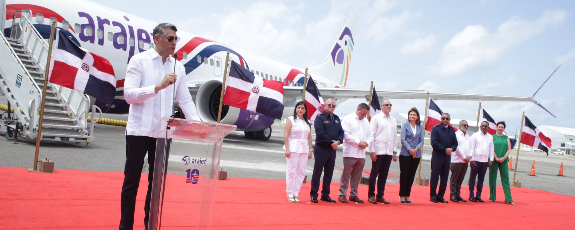 Arajet, la línea aérea de precios bajos del Caribe, celebró la llegada de su décima aeronave, un Boeing 737 Max 8. Esta aeronave, denominada “Los Haitises”, exhibe un diseño especial con la bandera dominicana a lo largo del fuselaje, resaltando la identidad nacional y el nuevo Hub aéreo de la región.