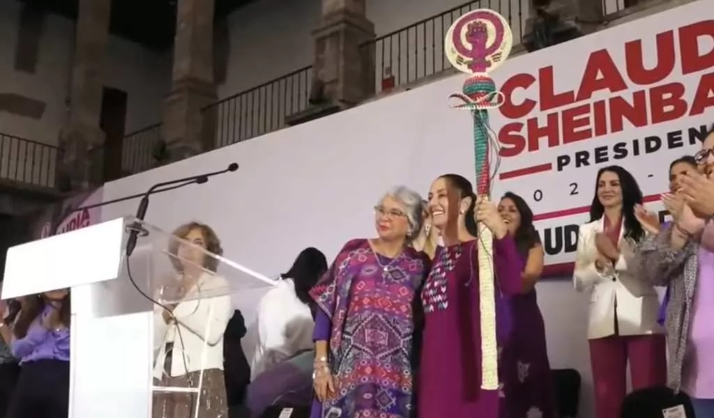 Arropada por políticas, activistas y representantes de los pueblos indígenas, la virtual presidenta electa Claudia Sheinbaum recibió el ‘Bastón de las Mujeres’. Este acto simbolizó el compromiso con la perspectiva feminista en su gobierno.
