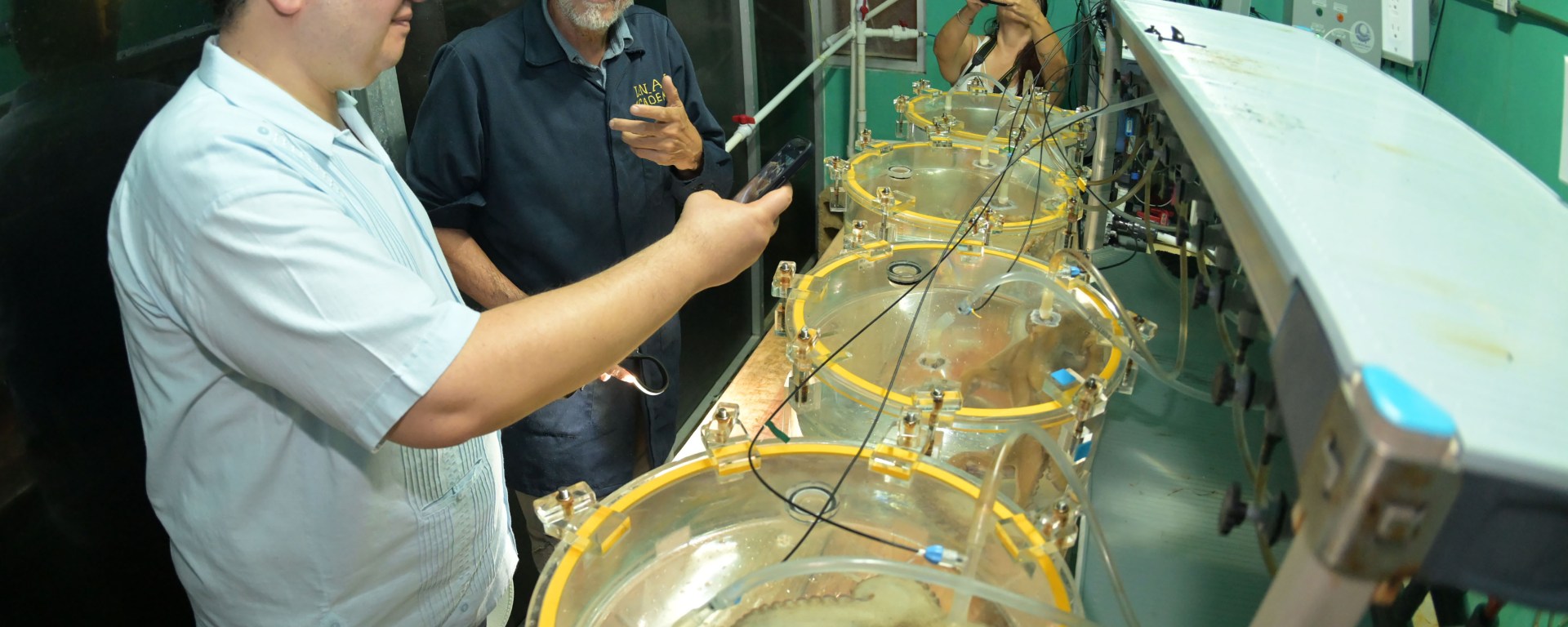 En la Unidad Sisal, el rector recorrió laboratorios de la Facultad de Ciencias donde se estudia la reproducción del pulpo y el calentamiento global. También visitó la Facultad de Química, donde se investigan moléculas bioactivas en la saliva y tinta de pulpo para nuevos fármacos.