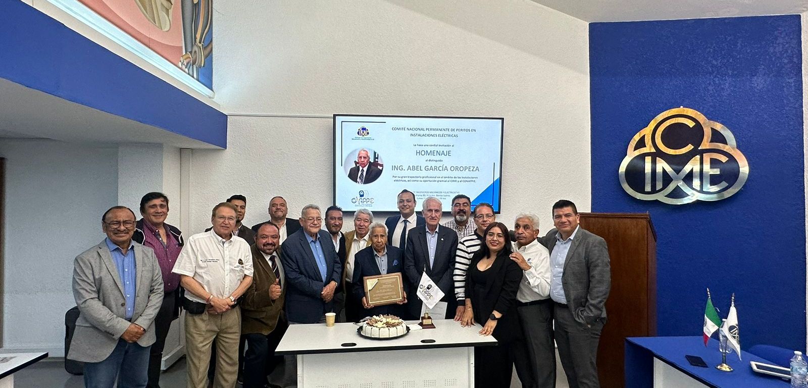 En medio de anécdotas y momentos históricos que marcaron el rumbo de la ingeniería en nuestro país, integrantes del Colegio de Ingenieros Mecánicos y Electricistas, A.C. (CIME) homenajearon al ingeniero Abel García Oropeza por su trayectoria de 70 años en la industria de instalaciones eléctricas, que promueve la seguridad para la vida de las personas y la preservación de la propiedad.