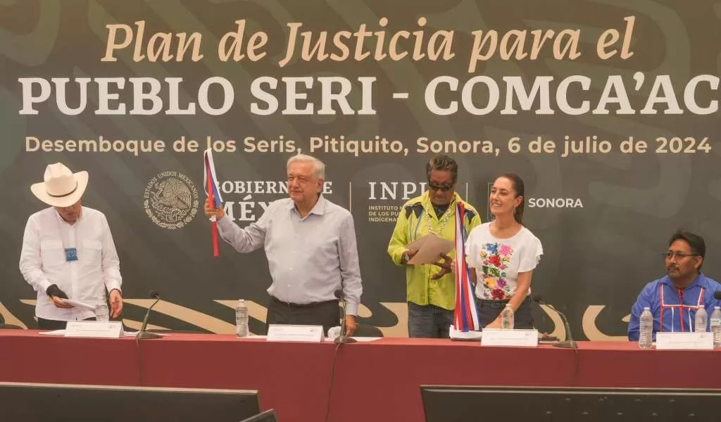 El presidente Andrés Manuel López Obrador anunció que la virtual presidenta electa, Claudia Sheinbaum, daría continuidad al plan de justicia para comunidades indígenas del país. Durante la evaluación del Plan de Justicia para el Pueblo Seri-Comca’ac, López Obrador resaltó que «durante 500 años, no habían gobernado mujeres en nuestro país». En el caso de la futura presidenta, enfatizó que se trata de una mujer que desde niña participó en movimientos sociales y en la lucha por la justicia.