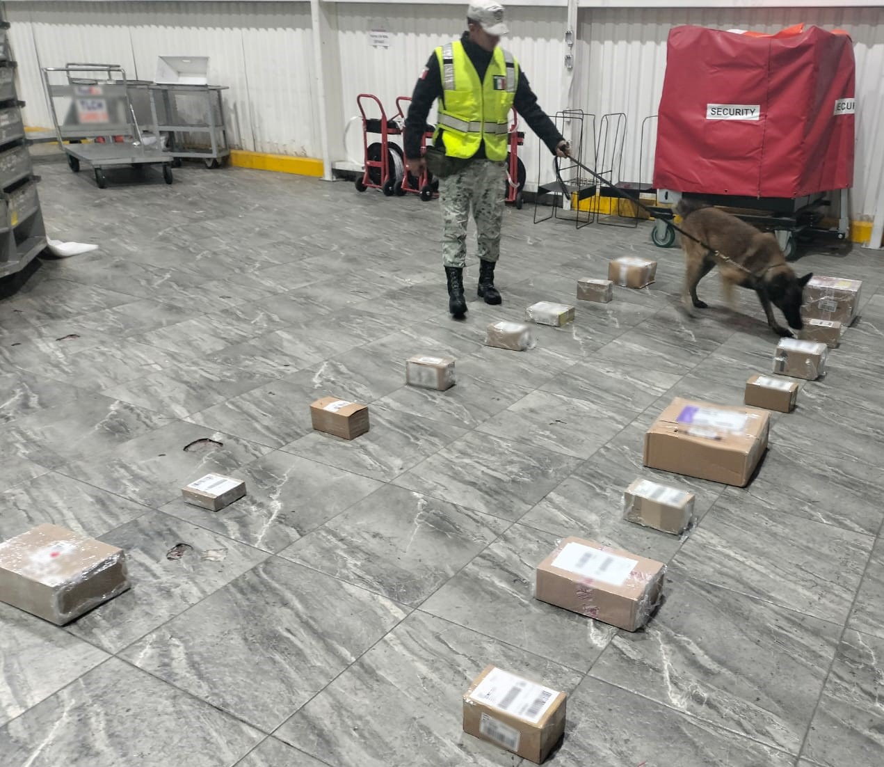 En el Aeropuerto Internacional de Toluca (AIT), estado de México, un perro de la Guardia Nacional (GN) localizó 16 envíos de mensajería con posible marihuana, los cuales pretendían ser enviados a los estados de Baja California Sur, Chihuahua, Nuevo León, Sonora, Quintana Roo y Yucatán.