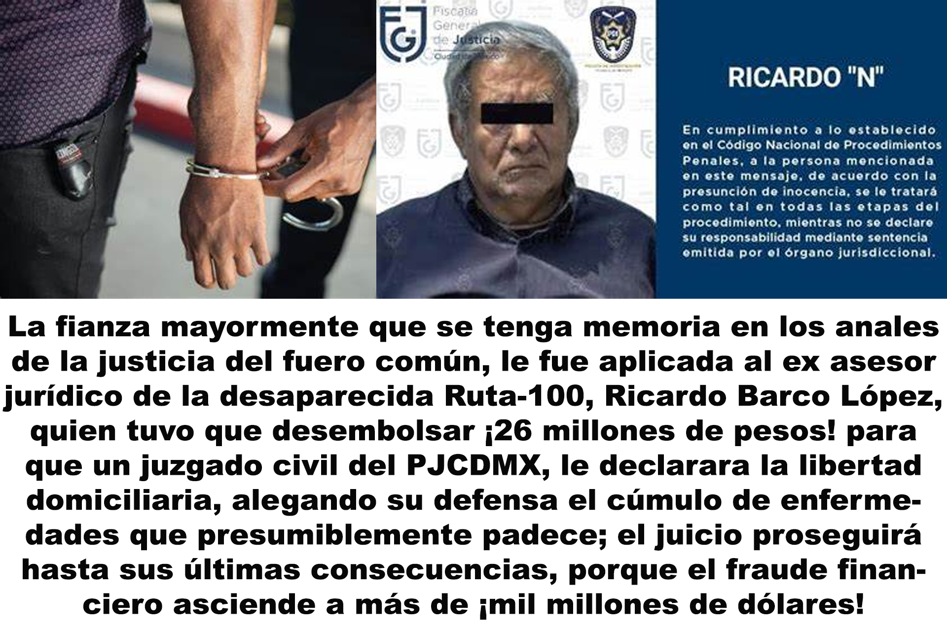 El pago de la fianza por parte de Barco López no lo absuelve. El juicio continuará bajo arraigo domiciliario, según la Comisión. Barco López, exlíder poderoso de la Ruta 100, enfrenta la justicia por sus delitos.