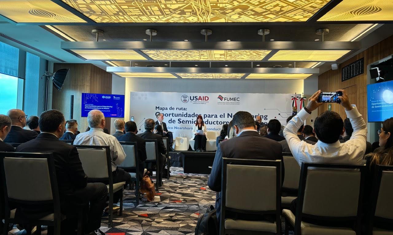 En el evento se presentó el documento del mismo nombre creado por la Fundación México-Estados Unidos para la Ciencia (FUMEC), con el apoyo financiero de la Agencia de los Estados Unidos para el Desarrollo Internacional (USAID, por sus siglas en inglés) en México. El objetivo es proporcionar un marco de referencia para los líderes de los sectores público y privado, que buscan formular acciones y políticas que promuevan la inversión nearshoring en el sector de semiconductores en el país.