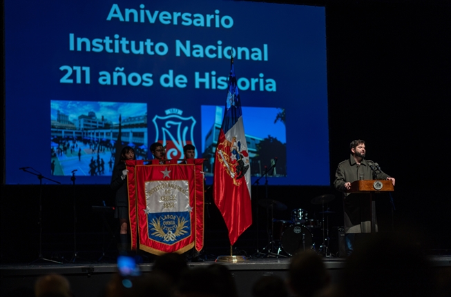El presidente Gabriel Boric Font participó del aniversario 211 del Instituto Nacional José Miguel Carrera junto al ministro de Educación, Nicolás Cataldo; la alcaldesa de Santiago, Irací Hassler; la rectora del establecimiento, Carolina Vega; y la comunidad educativa del instituto.