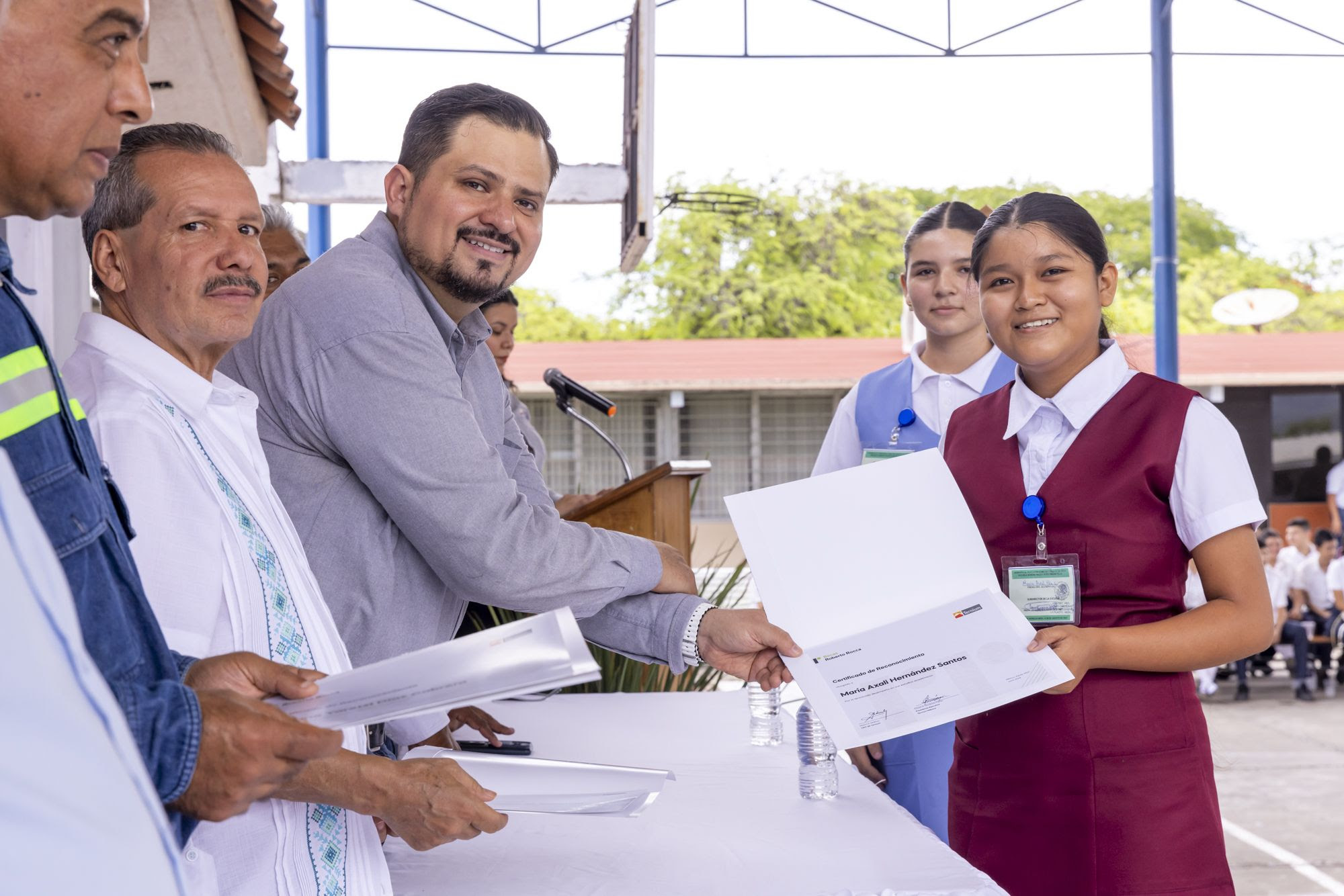 Ternium entregó 40 becas Roberto Rocca a estudiantes de secundaria de las comunidades de Aquila, Coahuayana, Zapotán y La Placita de Morelos, en un evento realizado en la Secundaria Técnica No. 8 en Coahuayana, Michoacán.