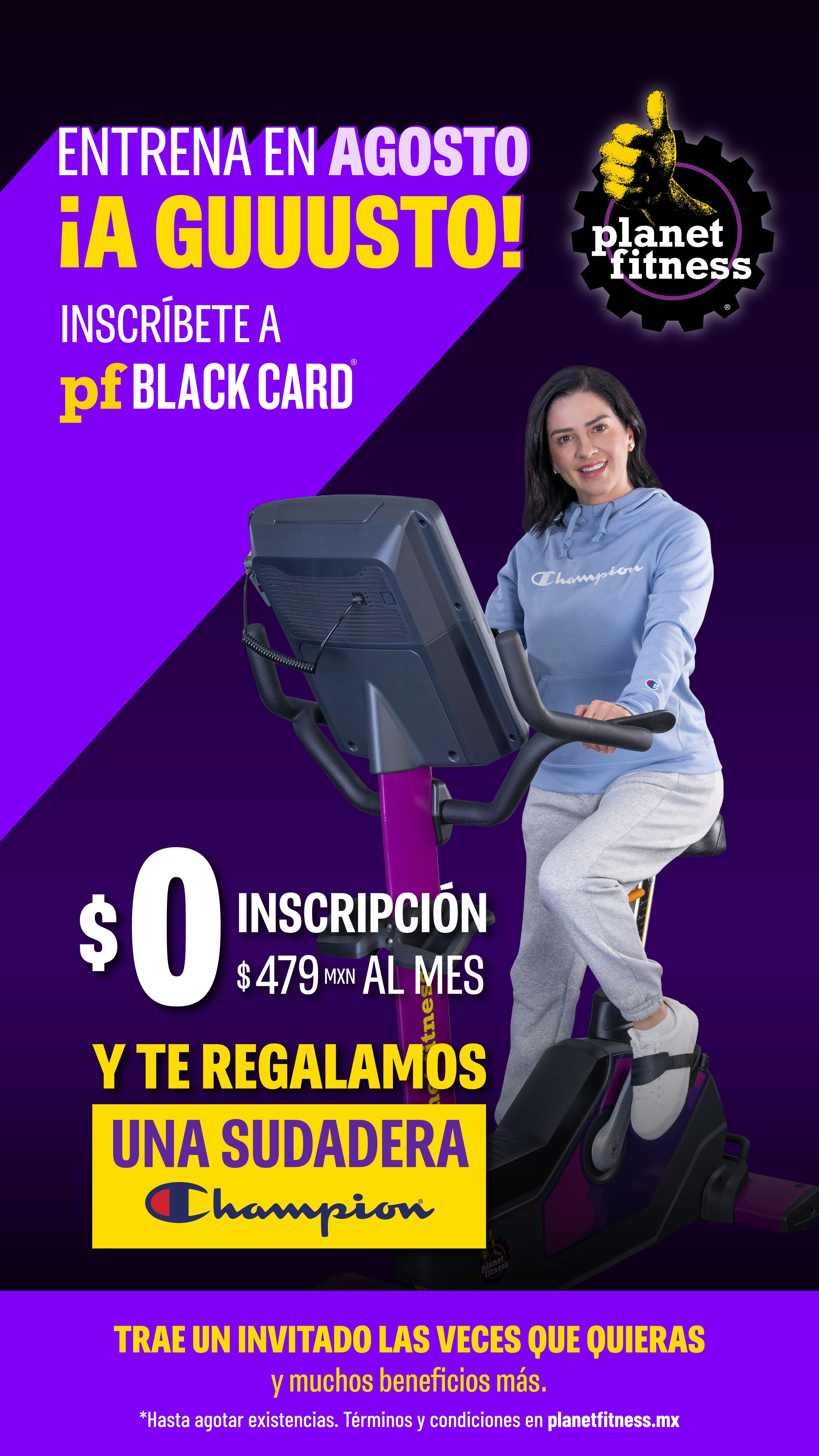 Del 12 al 23 de agosto, hay que aprovechar los precios únicos de la membresía PF Black Card. Durante este período se puede aprovechar el obtener una sudadera Champion GARTIS, $0 pesos de inscripción, la anualidad con su precio único de $499 y mensualidad de $479. En esta Zona Libre de Críticas, no importa si se es un principiante en el mundo del fitness o un experto en entrenamiento. Todos son bienvenidos a descubrir una experiencia de entrenamiento libre de juicios y presiones.