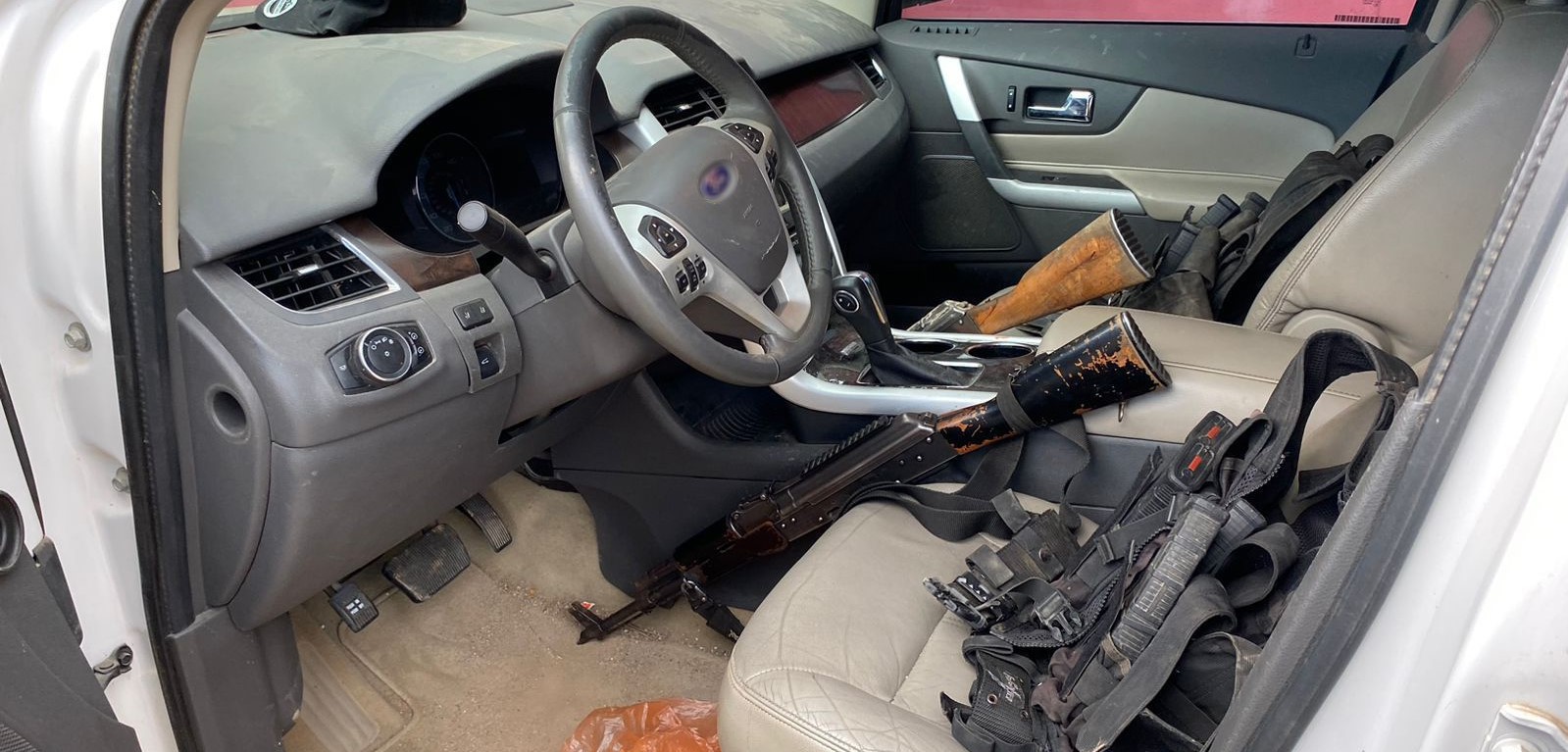 Con las debidas medidas de seguridad, el personal se aproximó al sitio y desplegó un dispositivo para la búsqueda del individuo, sin obtener resultados positivos; no obstante, al inspeccionar el vehículo se localizó lo siguiente: